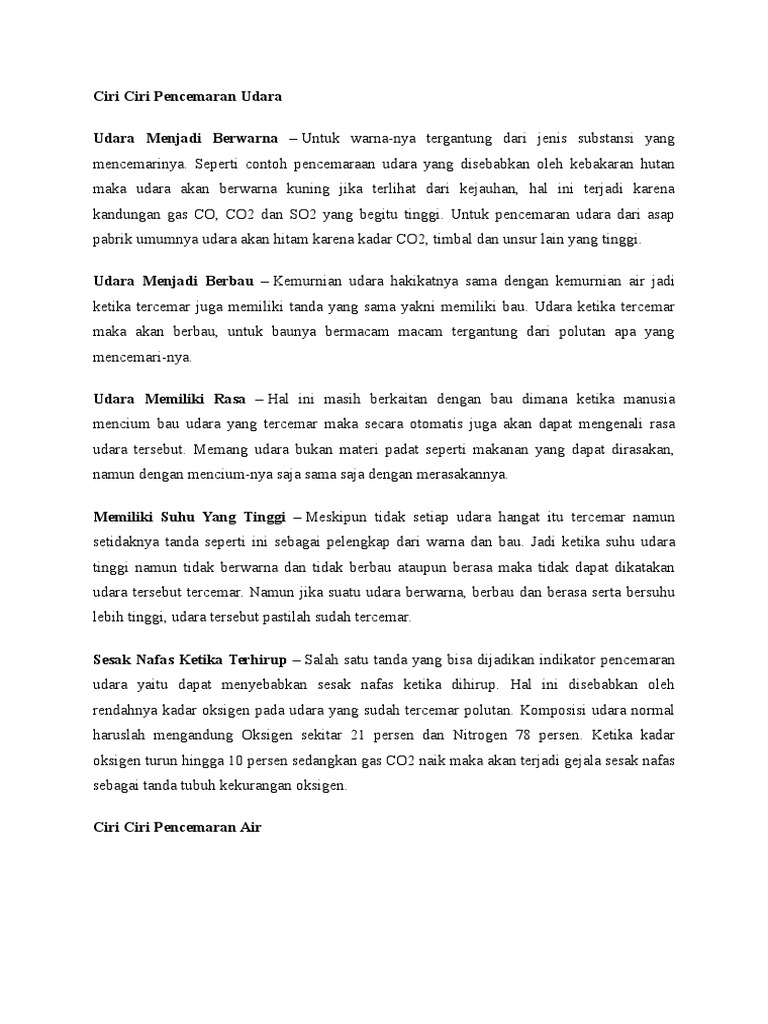 Ciri Ciri Pencemaran Udara Sumber : www.scribd.com